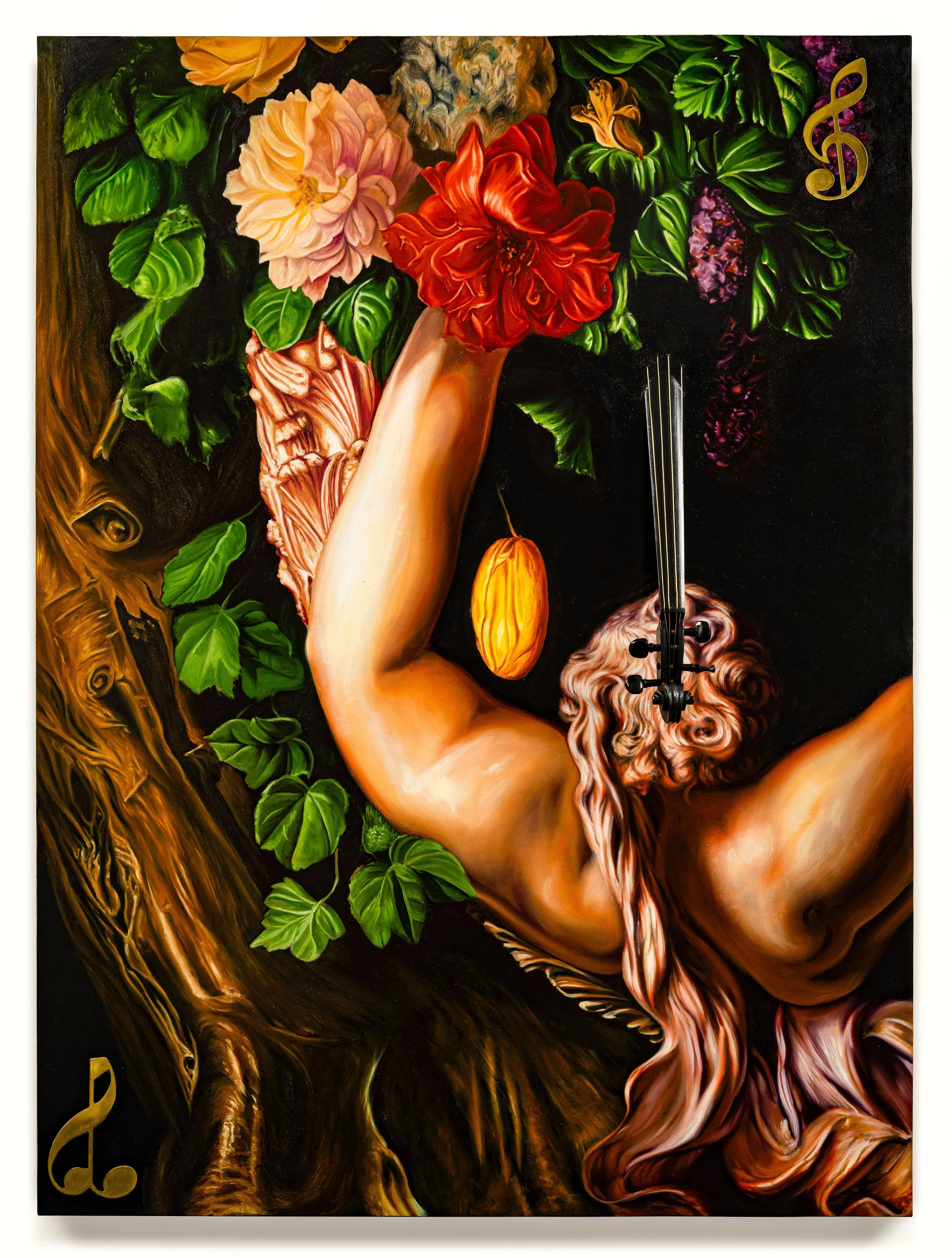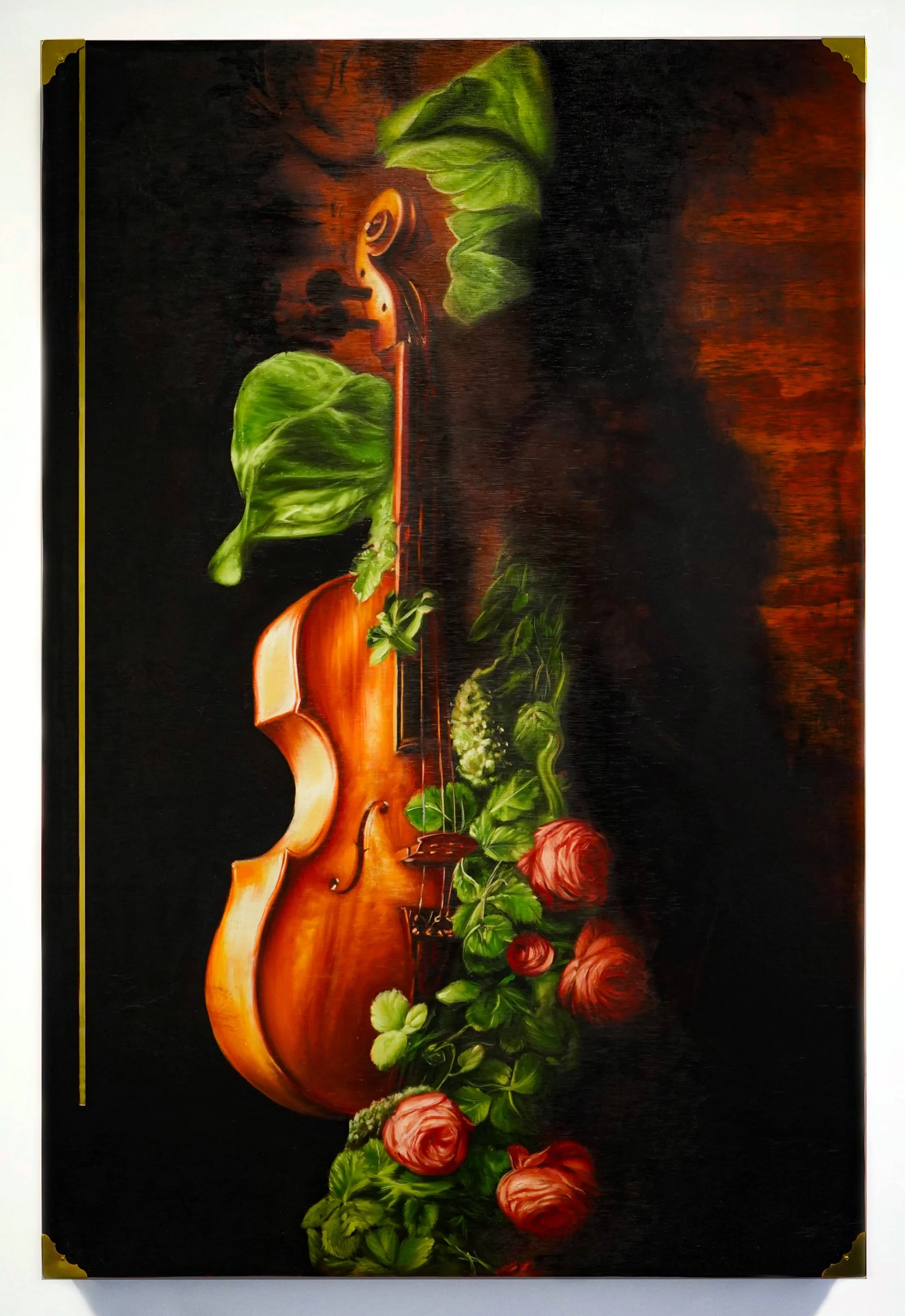 Bad Samaritan, 2024 Oil and brass on wood panel, 48" x 36"